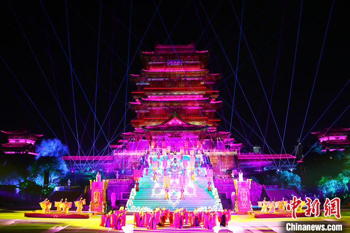 圖為2021年1月1日晚,大型實(shí)景演出《尋夢滕王閣》在江西南昌滕王閣景區(qū)正式公演。 中新社記者 劉占昆 攝