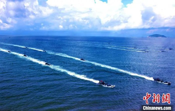 資料圖:兩棲裝甲裝備泛水編波訓(xùn)練。