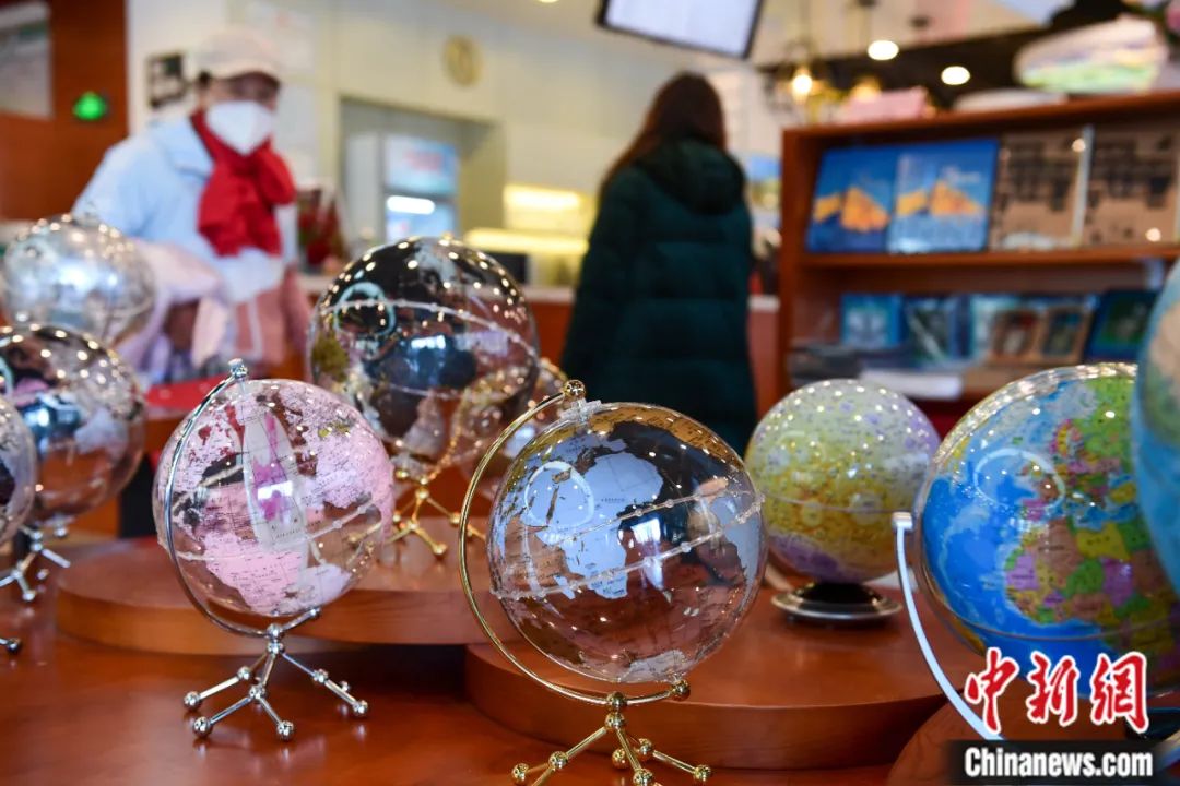 市民在北京一家地圖主題書店選購地球儀。田雨昊 攝