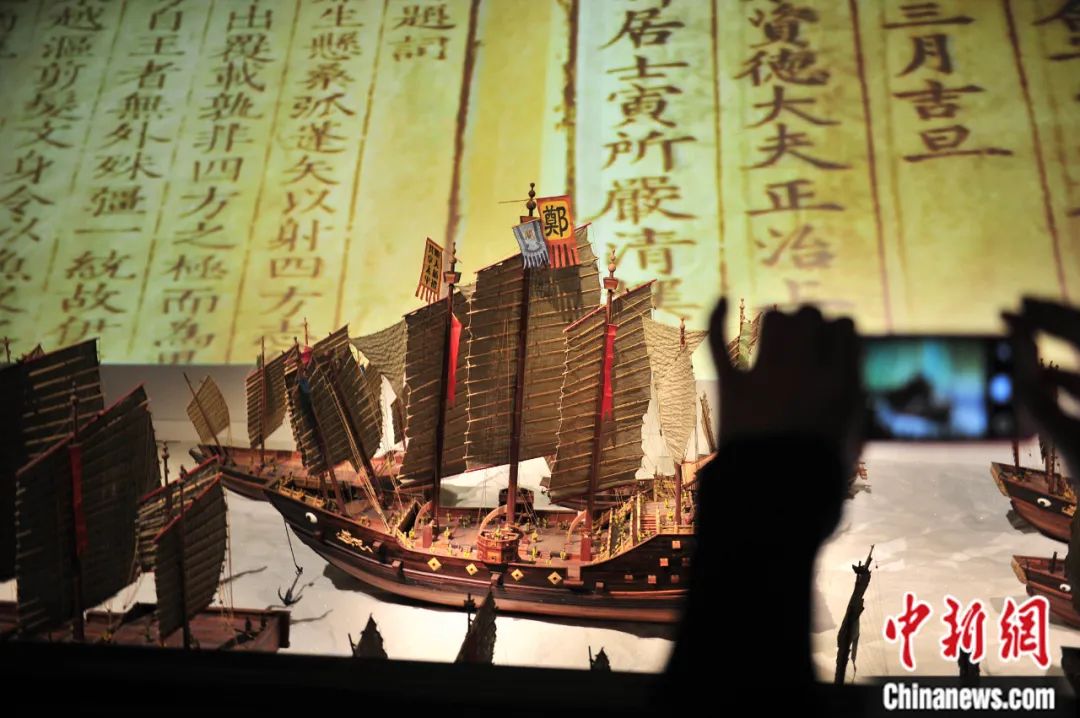 云南昆明鄭和紀(jì)念館,鄭和船隊模型吸引觀眾。劉冉陽 攝
