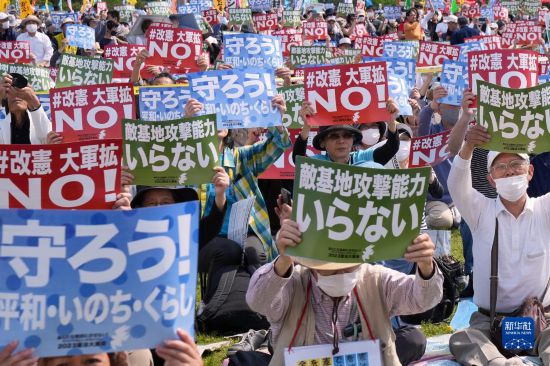 5月3日是日本憲法紀(jì)念日。當(dāng)天,約2.5萬名日本民眾聚集在東京有明防災(zāi)公園的廣場(chǎng)上,舉行了守護(hù)憲法集會(huì),他們打出守護(hù)憲法、反對(duì)強(qiáng)軍擴(kuò)武、不要反擊能力、反對(duì)修改憲法等內(nèi)容的標(biāo)語和旗幟,呼吁守護(hù)憲法、守護(hù)和平。