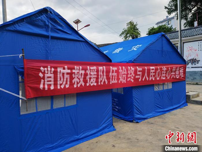 圖為地震現(xiàn)場搭起的的應(yīng)急救災(zāi)帳篷?!≡颇鲜∠谰仍傟牴﹫D