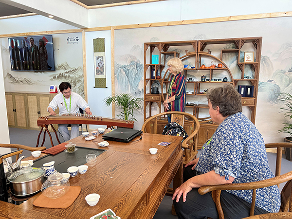 作為南非首個中國茶文化體驗中心,中國傳統茶藝在這一極具特色的非洲旅游文化盛宴上精彩亮相,形成別具一格的文化碰撞。在這古香古色的茶室里,茶香彌漫,琴聲悠揚。美輪美奐的茶具、行云流水的茶藝和典雅的古箏演奏共同構成了一幅傳統文化之畫卷。參觀者們在近距離體驗茶藝的同時,還親身感受到了中國茶文化的獨特魅力與韻味。