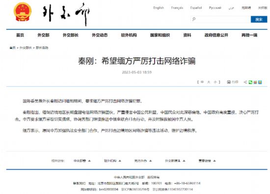 此前,國(guó)務(wù)委員兼外交部長(zhǎng)秦剛訪(fǎng)問(wèn)緬甸期間,就鄭重地向緬方提到了網(wǎng)絡(luò)詐騙:“緬甸邊境地區(qū)長(zhǎng)期盤(pán)踞電信網(wǎng)絡(luò)詐騙團(tuán)伙,嚴(yán)重侵害中國(guó)公民利益,中國(guó)民眾對(duì)此深?lèi)和唇^。中國(guó)政府高度重視,決心嚴(yán)厲打擊?!?/p>