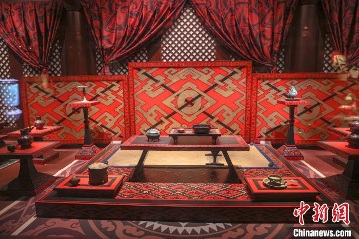 南昌漢代?;韬顕?guó)考古遺址公園內(nèi)的“禮樂宴饗”展區(qū)?!≈行律缬浾?劉力鑫 攝
