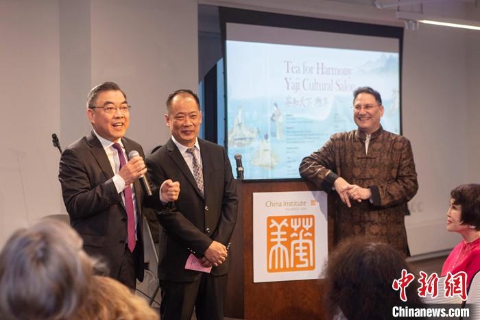 中國(guó)駐紐約總領(lǐng)事黃屏當(dāng)天致辭說,中國(guó)有句諺語——“開門七件事,柴米油鹽醬醋茶”。古往今來,茶已不僅僅是中國(guó)人的日常飲品,更是中華文化的重要代表符號(hào)。一代又一代中國(guó)人,通過茶具、茶藝、茶道等元素創(chuàng)造了獨(dú)具韻味的美學(xué)境界,在豐富中國(guó)茶文化內(nèi)涵的同時(shí)也引領(lǐng)了百姓的生活方式。與此同時(shí),茶還是中外文化交流互鑒的重要媒介。