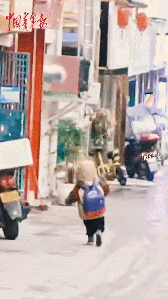 小朋友一路小跑,開心極了