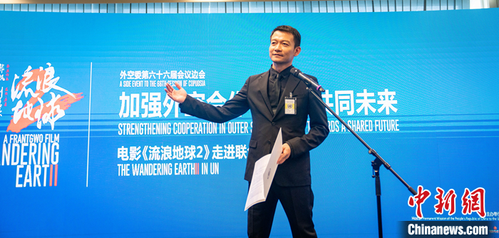 圖為《流浪地球2》導演郭帆致辭。 中新社發(fā) 中國常駐維也納代表團 供圖
