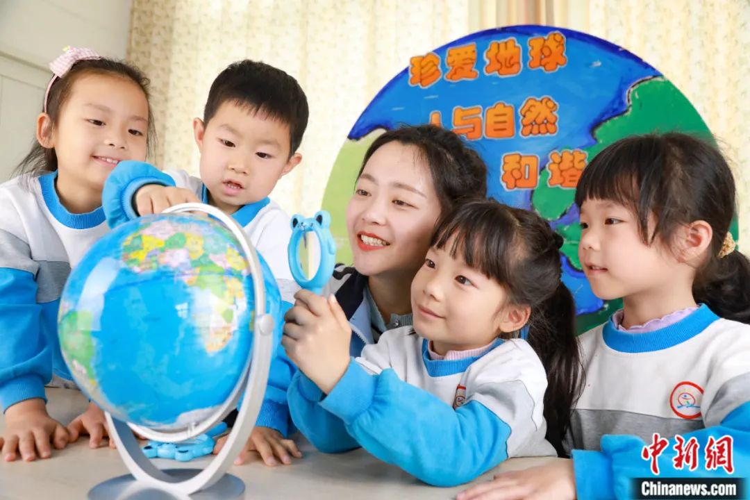 老師為孩子們講解地球結(jié)構(gòu)知識(shí)。周洪峰 攝