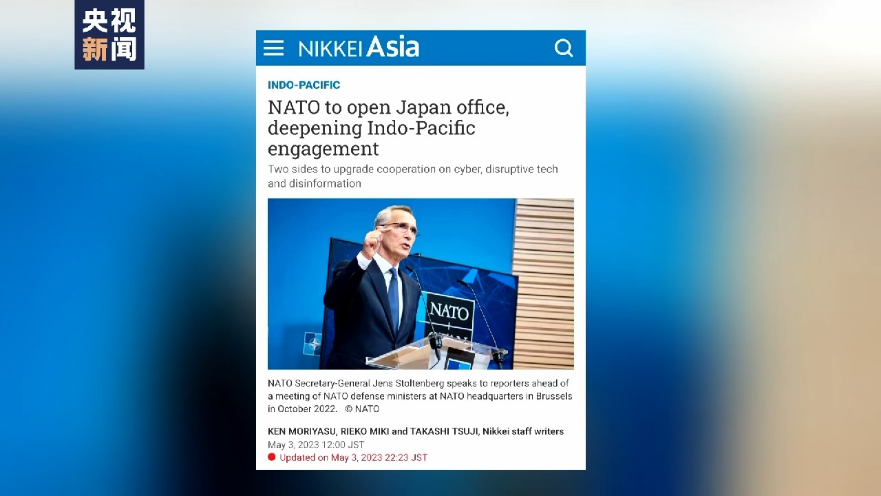 今年5月,日本《日經(jīng)亞洲》刊出獨(dú)家新聞,援引來(lái)自日本和北約官員的信源報(bào)道稱(chēng),北約駐日本辦事處將在2024年正式掛牌。