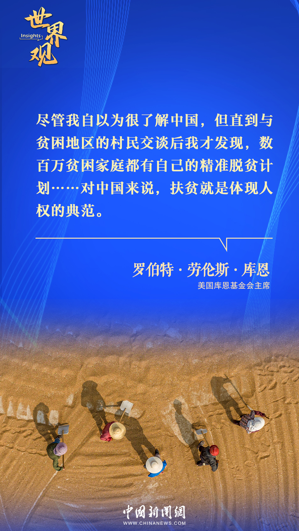 美國(guó)庫(kù)恩基金會(huì)主席羅伯特·勞倫斯·庫(kù)恩則表示,中國(guó)的精準(zhǔn)脫貧計(jì)劃,對(duì)各國(guó)脫貧和促進(jìn)人權(quán)工作具有借鑒意義。