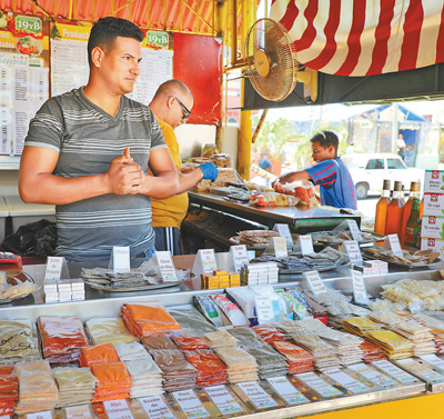 古巴首都哈瓦那一個(gè)市場(chǎng)內(nèi),商販正在等待顧客前來(lái)購(gòu)買調(diào)料。