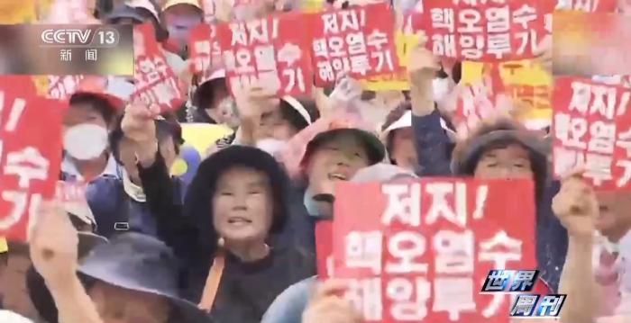 同一天,在日本駐濟(jì)州總領(lǐng)事館前,來(lái)自濟(jì)州自治道漁業(yè)和農(nóng)業(yè)團(tuán)體約2000多人集會(huì)抗議,譴責(zé)日本將福島核電站核污染水排放入海。