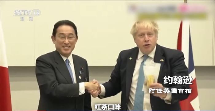 時(shí)任英國(guó)首相約翰遜:福島小餅干,謝謝。紅茶口味,這是紅茶口味對(duì)吧?