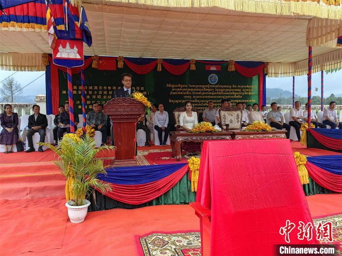 中新社金邊6月19日電 (記者 楊強(qiáng))當(dāng)?shù)貢r(shí)間6月18日,瀾湄合作專項(xiàng)基金“瀾湄國(guó)家典型小流域綜合治理示范(三期)”項(xiàng)目俄勒塞村成果移交儀式在柬埔寨國(guó)公省莫邦縣舉行。中國(guó)駐柬埔寨大使館公使銜參贊趙海燕、柬埔寨國(guó)公省省長(zhǎng)密杜娜·布通以及當(dāng)?shù)馗鹘缑癖?00余人出席。