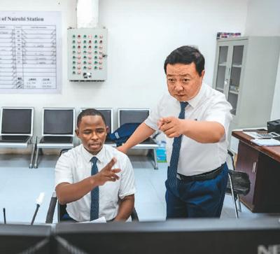 毛鑫是非洲之星鐵路運(yùn)營公司運(yùn)輸部內(nèi)羅畢車站運(yùn)轉(zhuǎn)主任,他與徒弟彼得·恩堅(jiān)加一起制定調(diào)度計(jì)劃、調(diào)控列車運(yùn)轉(zhuǎn)?!拔覀儫o保留地把國內(nèi)的技術(shù)標(biāo)準(zhǔn)帶到肯尼亞,學(xué)員已達(dá)到國內(nèi)車站同等作業(yè)標(biāo)準(zhǔn)?!泵握f,幫助肯尼亞建設(shè)第一條現(xiàn)代化鐵路,是他人生中的亮點(diǎn)。彼得表示,自己從師父身上學(xué)到了許多專業(yè)技術(shù),未來他將把知識(shí)傳授給更多人。