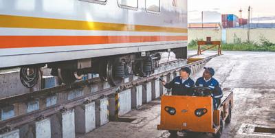 在肯尼亞內(nèi)羅畢,吳同明(左)與學(xué)員基魯姆瓦在車輛運(yùn)用車間檢查客運(yùn)車廂。2017年來到肯尼亞的中國師父吳同明是非洲之星鐵路運(yùn)營公司機(jī)輛部車間工程師?!皩W(xué)員的積極主動(dòng)讓我印象深刻?!眳峭髡f?;斈吠哒f:“未來希望更多的中國老師來到肯尼亞,與我們一同推動(dòng)基礎(chǔ)設(shè)施建設(shè)?!?/p>