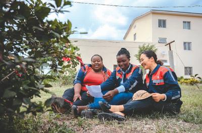 中國師父陳玲(右)是非洲之星鐵路運(yùn)營公司工電部電子設(shè)備檢修工區(qū)工長。在肯尼亞工作4年來,她見證了女學(xué)員們電務(wù)技術(shù)的成長?!艾F(xiàn)在她們都能獨(dú)當(dāng)一面?!标惲嵴f。朱迪思(左)是陳玲的學(xué)員之一,她從師父那里獲得的不僅是技術(shù),工作間隙對(duì)飲食、文化等多維度的交流同樣讓她受益匪淺?!拔覀冎g是師徒,更是姐妹?!敝斓纤颊f。圖為陳玲在休息時(shí)教學(xué)員唱中文歌曲。