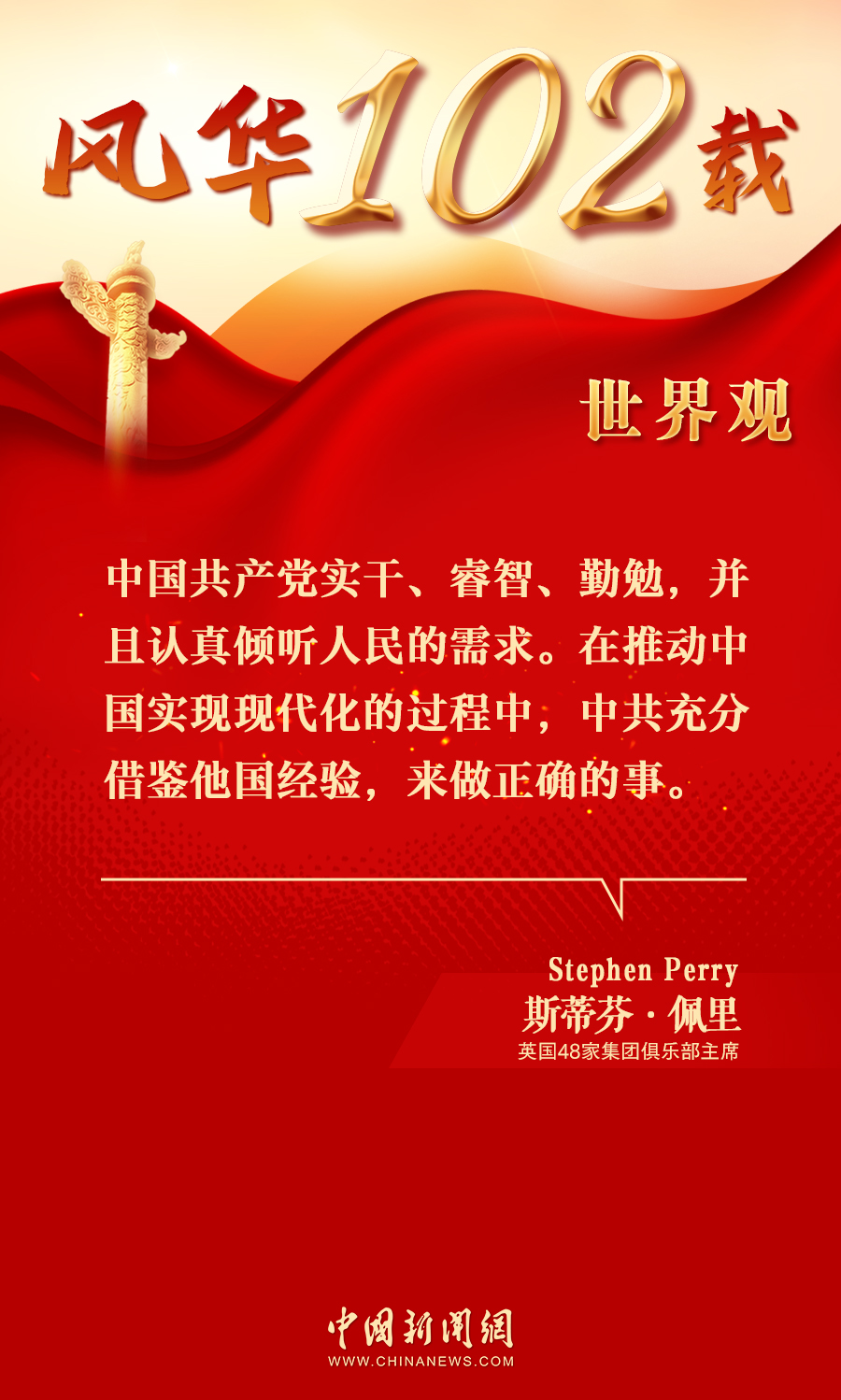 中新網7月2日電(吳辛茹 彭大偉)近日,英國48家集團俱樂部主席斯蒂芬·佩里(Stephen Perry)接受中國新聞網專訪,高度贊揚中國共產黨以人民為中心的發(fā)展思想,“認真傾聽人民的需求,并且積極回應民意?!?/p>