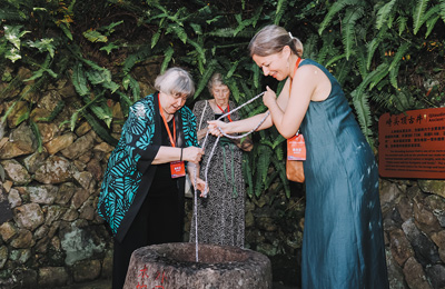 走過枝繁葉茂的千年柳杉,穿過青石鋪就的鼓嶺老街,在始建于1914年的萬國公益社,大家圍坐桌前共敘鼓嶺情緣,一幅穿越時(shí)光的友誼畫卷緩緩打開。