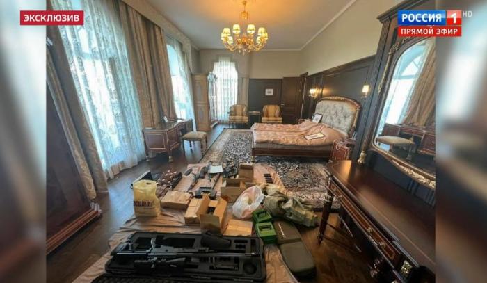 據(jù)報(bào)道,“俄羅斯1”電視頻道在“60分鐘節(jié)目中”展示了普里戈任辦公室和家中的畫(huà)面,執(zhí)法人員在那里發(fā)現(xiàn)了現(xiàn)金、假發(fā)、護(hù)照、武器等,房屋的院子里還停放著一架小型直升機(jī)。