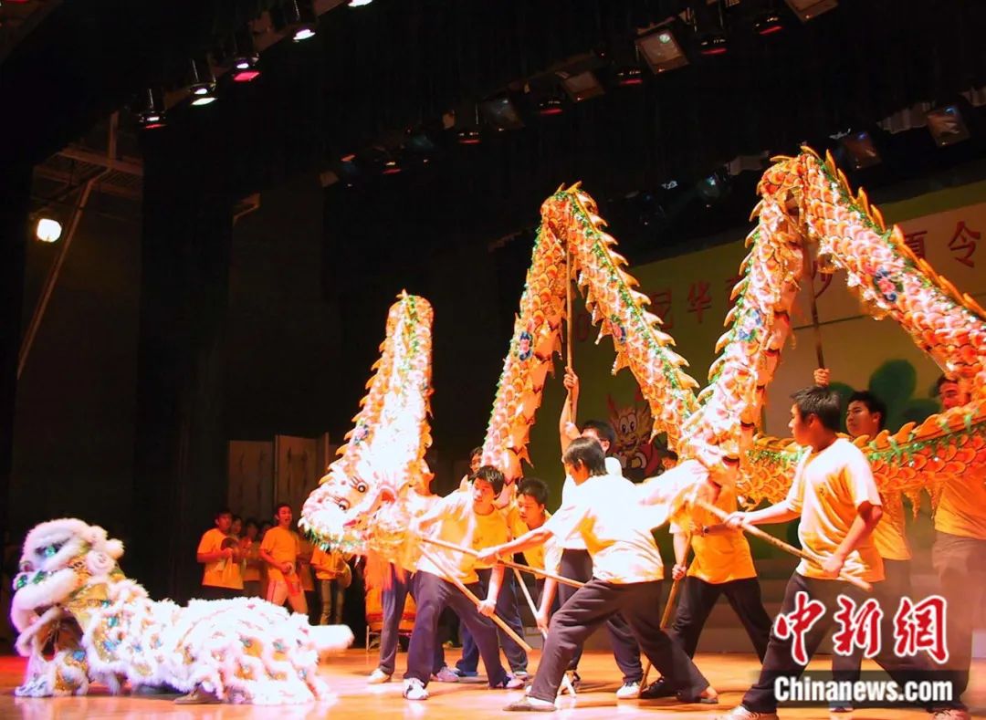 2005年6月,印尼華裔青少年夏令營在中國湖南省舉行。圖為閉營儀式上印尼青少年進(jìn)行精彩的舞龍表演。劉雙雙 攝