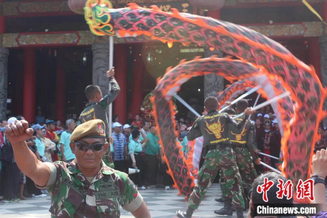 舞龍舞獅作為中國民間傳統(tǒng)文化,其藝術(shù)形式已成為世界通行的“文化語言”。印尼軍方一些連隊(duì)也喜歡舞龍運(yùn)動(dòng),因?yàn)槲椠埐粌H可培養(yǎng)勇敢和團(tuán)隊(duì)精神,還能讓士兵們步伐靈活、動(dòng)作協(xié)調(diào)一致,同時(shí)又具有很強(qiáng)的娛樂性。去年10月,印尼龍獅運(yùn)動(dòng)聯(lián)合總會(huì)在日惹舉辦了印尼全國龍獅大賽,印尼軍方派出多支代表隊(duì)參賽。今年3月,北蘇門答臘省龍獅分會(huì)在棉蘭舉辦國際舞獅大賽,當(dāng)?shù)剀姺揭才沙鑫椠堦?duì)到場表演。