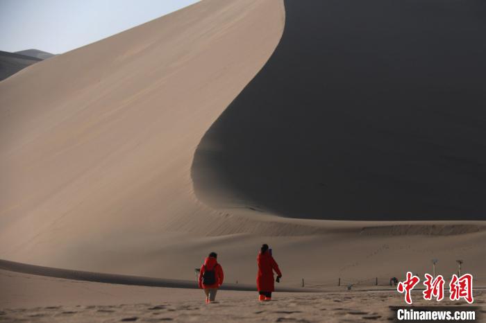 資料圖,游客在甘肅省敦煌市鳴沙山月牙泉景區(qū)游覽?!垥粤?攝