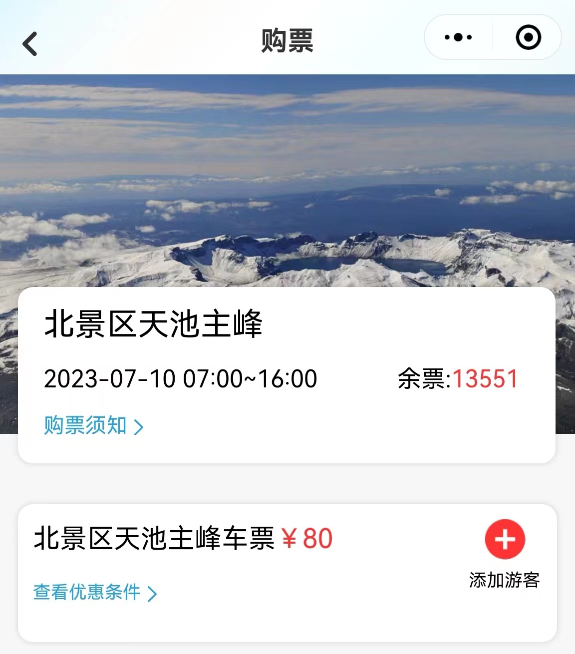 吉林長白山北景區(qū)的組合票。 截圖自“長白山”微信公眾號。