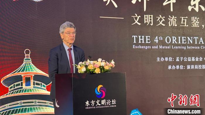 2023年7月23日,哈佛大學國際研究中心主任、哥倫比亞大學經(jīng)濟學教授杰弗里·薩克斯在第四屆東方文明論壇上作主題演講。 中新社記者 鄧力垚 攝