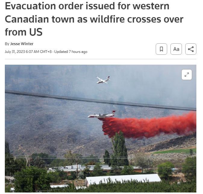 據(jù)報道,加拿大不列顛哥倫比亞省野火管理部門當(dāng)?shù)貢r間30日稱,這場名為“鷹崖”(Eagle Bluff)的野火距離奧索尤斯約四公里,目前在加拿大邊境一側(cè)的燃燒面積估計為885公頃,美國一側(cè)的燃燒面積大約為2000公頃。