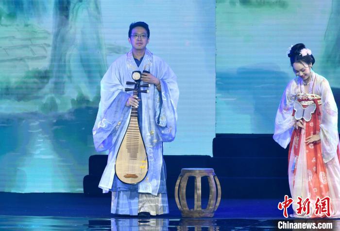 圖為魏辰運(yùn)(左)在福州舉辦的海峽漢服節(jié)上登臺表演琵琶彈奏。呂明 攝
