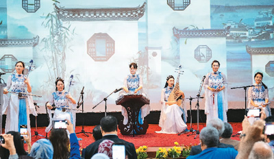身著中國傳統(tǒng)服飾,景德鎮(zhèn)瓷樂隊(duì)的姑娘們自信地登上舞臺(tái),用瓷甌、瓷二胡、瓷琵琶、瓷笛,帶來令人耳目一新的瓷樂合奏,為當(dāng)?shù)赜^眾獻(xiàn)上一場極具中國傳統(tǒng)意蘊(yùn)的音畫大賞。