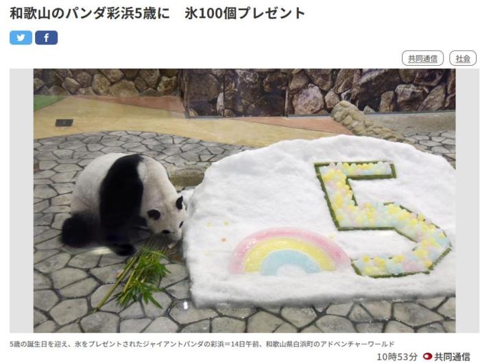 中新網(wǎng)8月14日電 據(jù)日本共同社報道,8月14日,日本和歌山縣白濱町“冒險大世界”動物園的雌性旅日大熊貓“彩濱”迎來五歲生日。