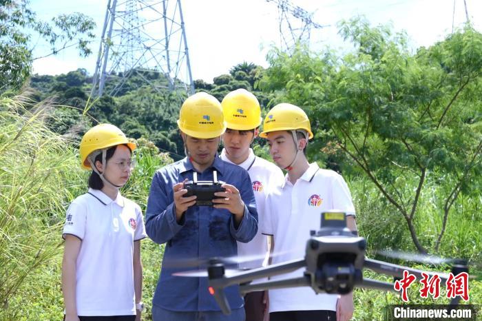 在南方電網(wǎng)公司深圳供電局實(shí)習(xí)的港澳臺大學(xué)生學(xué)習(xí)開展無人機(jī)巡視作業(yè)。(南方電網(wǎng)供圖)