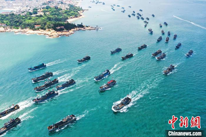 中新網(wǎng)漳州8月16日電(蔡曉曄)16日12時(shí)起,北緯26度30分以南的東海結(jié)束為期3個(gè)半月的伏季休漁期,在福建省漳州市各碼頭,眾多漁船在海警艦艇的護(hù)航下有序駛離漁港,千帆競(jìng)發(fā)奔赴不同漁區(qū)開(kāi)展捕撈作業(yè)。
