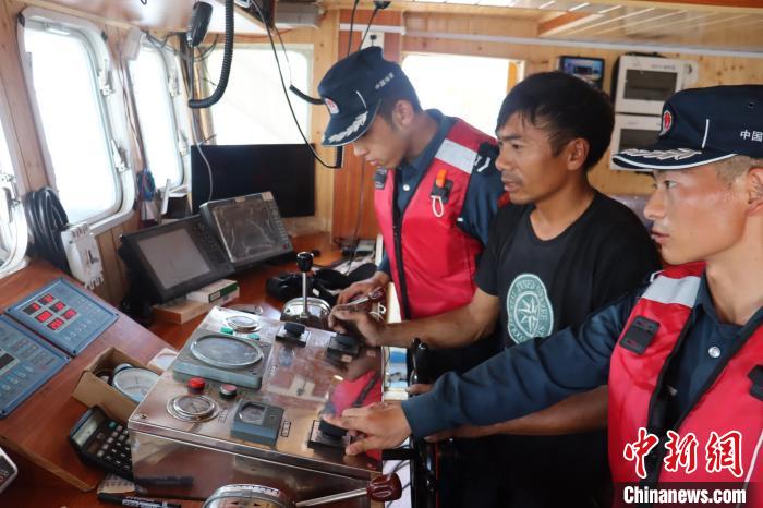 海警執(zhí)法員對(duì)漁船導(dǎo)航儀器設(shè)備進(jìn)行檢查。蔡曉曄 攝