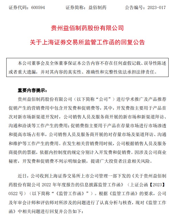 益佰制藥回復上交所年報監(jiān)管函。