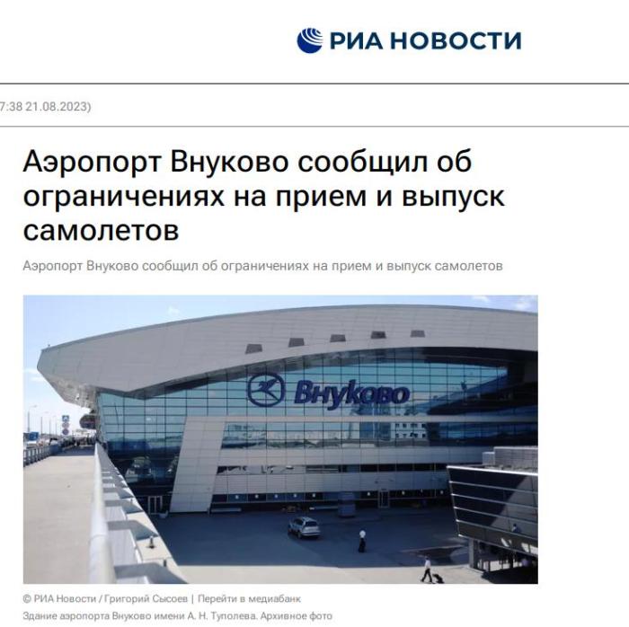 中新網(wǎng)8月21日電 據(jù)俄新社報(bào)道,當(dāng)?shù)貢r(shí)間21日,俄羅斯首都莫斯科的伏努科沃機(jī)場表示,出于機(jī)場無法控制的原因,暫時(shí)限制航班在該機(jī)場起降。