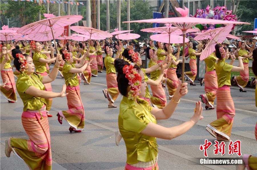 中國(guó)西雙版納傣族翩翩起舞慶祝潑水節(jié)??姵?攝