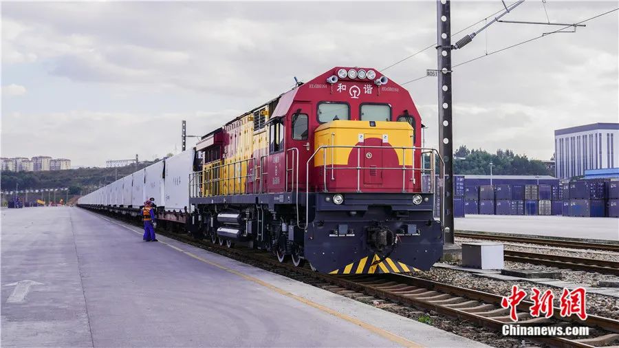 中老鐵路“瀾湄快線”國(guó)際貨物列車從昆明始發(fā)。王潘博 攝