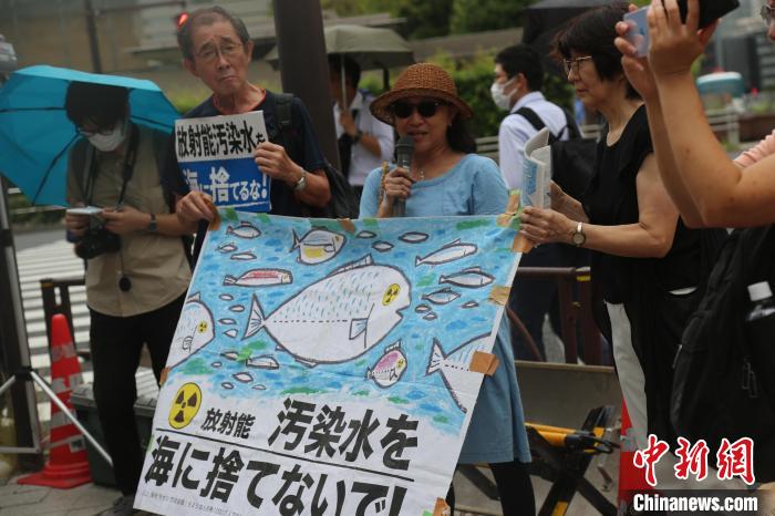 當(dāng)?shù)貢r(shí)間22日上午,日本政府宣布,將于8月24日啟動福島核污染水排海。反對核污染水排海的民眾當(dāng)日冒雨聚集在首相官邸前,舉起寫有“勿將核污染水排放入海”的橫幅或標(biāo)語牌,高呼“勿將代價(jià)留給未來”“不要污染大?!薄奥犅牆O民的聲音”等口號,抗議日本政府啟動核污染水排海的決定。