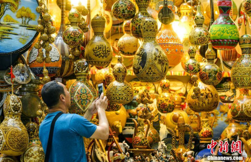 新疆國(guó)際大巴扎,游客被頗具特色的手繪葫蘆所吸引。劉新 攝