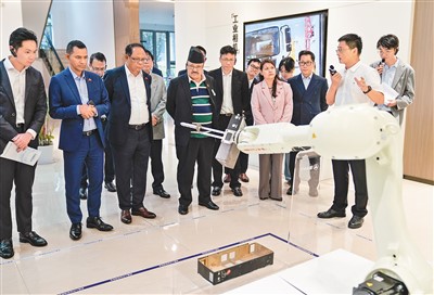 在自動檢測產(chǎn)品外觀缺陷的視覺質(zhì)檢機(jī)器人前,使節(jié)們停下腳步,饒有興致地觀看。火龍說:“在數(shù)字經(jīng)濟(jì)推動下,人工智能等技術(shù)與傳統(tǒng)工業(yè)深度結(jié)合,讓人耳目一新?!?/p>