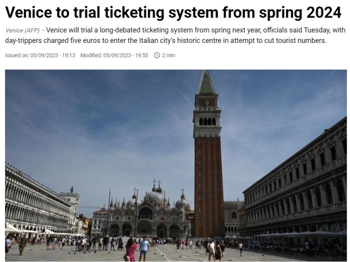 據(jù)報(bào)道,當(dāng)天,威尼斯市議會(huì)行政官員宣布同意購票入城制試運(yùn)行30天,且試運(yùn)行日期會(huì)分散在2024年春夏的法定節(jié)假日和周末。