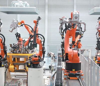 大眾安徽新能源汽車工廠車身車間。