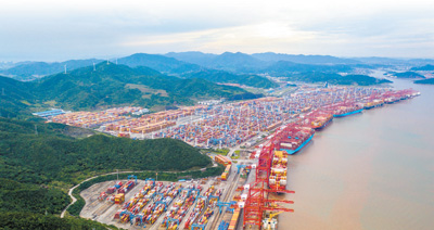 2023年6月,浙江省寧波舟山港穿山港區(qū)集裝箱碼頭,生產(chǎn)泊位“座無虛席”。
