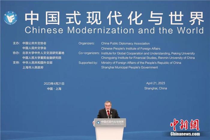 2023年4月21日,“中國式現(xiàn)代化與世界”藍廳論壇在上海“世界會客廳”舉辦,沙拉夫出席論壇開幕式并致辭。殷立勤 攝