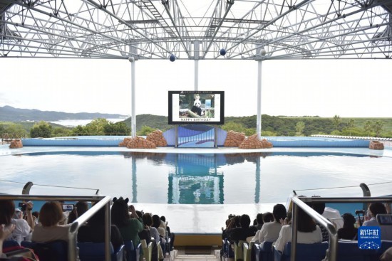 9月14日,觀眾在日本和歌山縣白浜冒險世界游樂園參加大熊貓“永明”31歲生日會。新華社發(fā)(中國駐大阪總領(lǐng)館供圖)