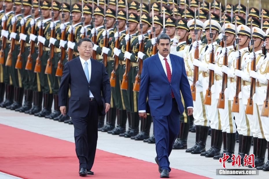 9月13日下午,中國國家主席習(xí)近平在北京人民大會(huì)堂同來華進(jìn)行國事訪問的委內(nèi)瑞拉總統(tǒng)馬杜羅舉行會(huì)談。會(huì)談前,習(xí)近平在人民大會(huì)堂東門外廣場(chǎng)為馬杜羅舉行歡迎儀式。中新社記者 盛佳鵬 攝